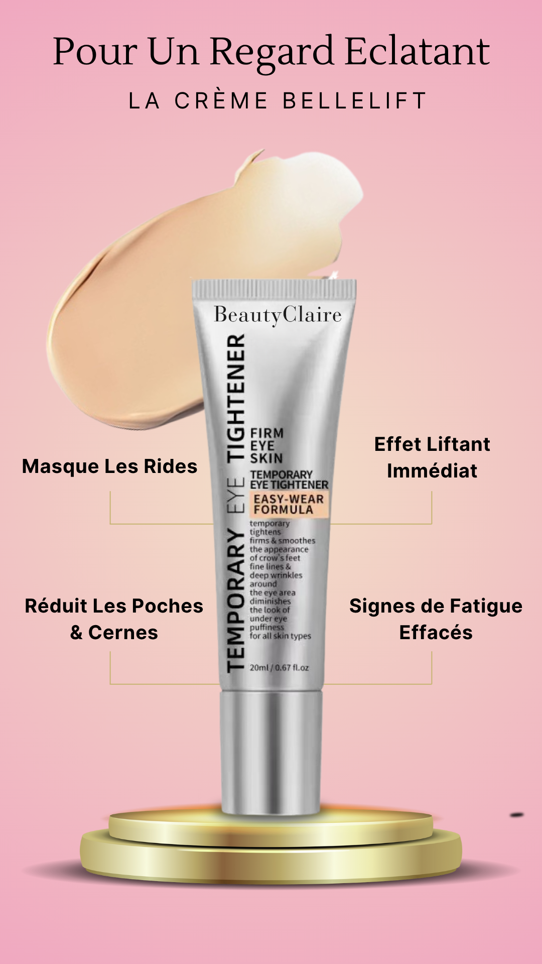 Enfin une crème qui atténue vraiment mes poches. Mon regard semble reposé même après une courte nuit, j'ai l'air plus reposée.